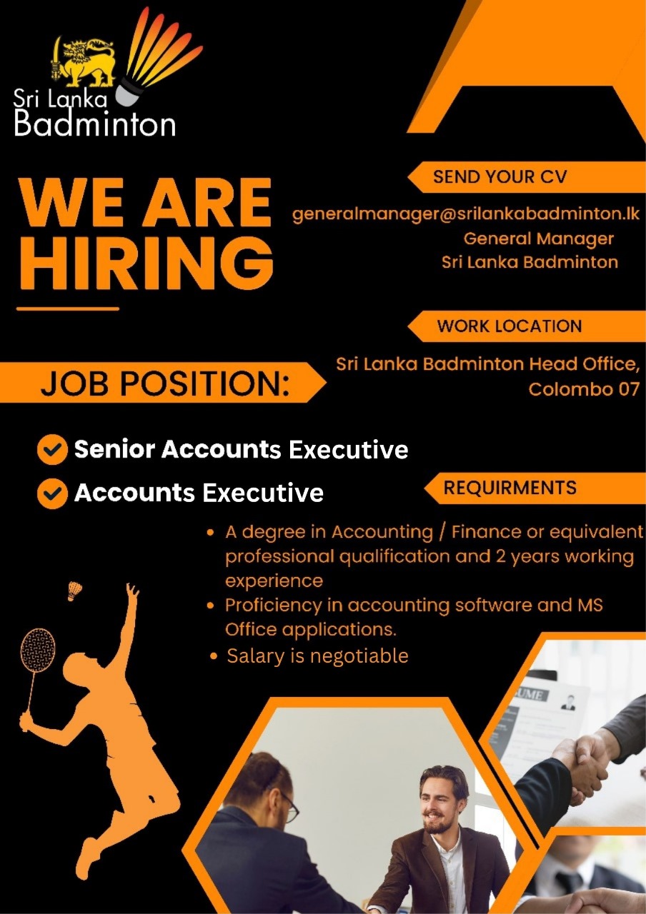 We’re Hiring! Join Sri Lanka Badminton as a Senior Accounts Executive or Accounts Executive. 📍 Colombo 07 | 📧 Send your CV: [email protected]